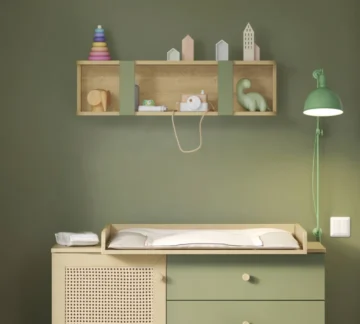 Poličnik Loof Baby v naravnem tonu z dodatkom nežne zelene barve bo poskrbel, da bo vse pri roki za vašega dojenčka.
