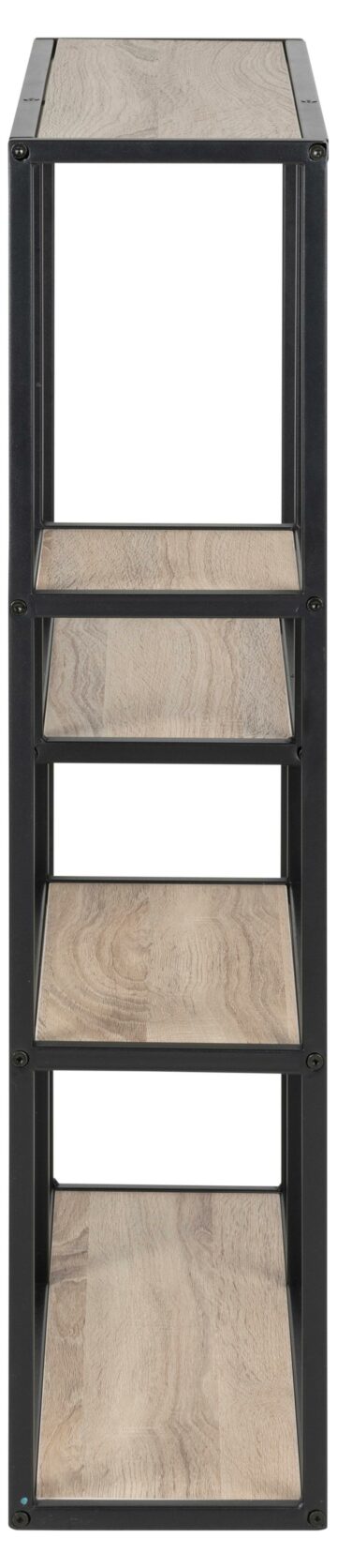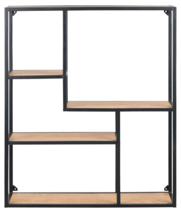 Ste si od nekdaj želeli popolno organizacijo vaših knjig, vendar so vam vse police bile nekako preveč dolgočasne? Asimetričen stenski poličnik Seaford je zagotovo rešitev za vas. Poličnik je izdelan s kovinskim ogrodjem, ki je prašno barvan v črno mat barvo. Vsak vsebuje 3 police izdelane iz oplemenitene iverne plošče, ki pa so na voljo v treh različnih odtenkih in sicer: divji hrast, sonoma hrast in črni jesen.