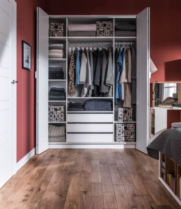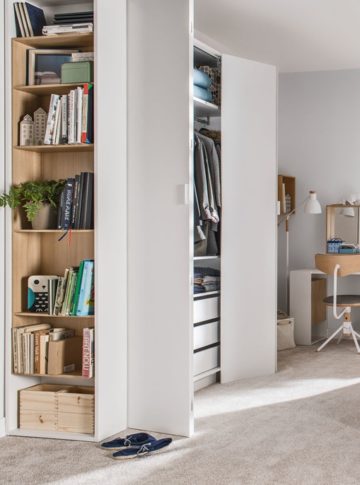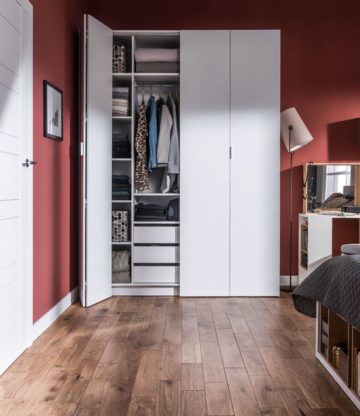 Lahko izbirate med garderobno omaro v beli ali sivi barvi. Prav tako lahko izbirate njeno višino: 206 ali 240 cm.