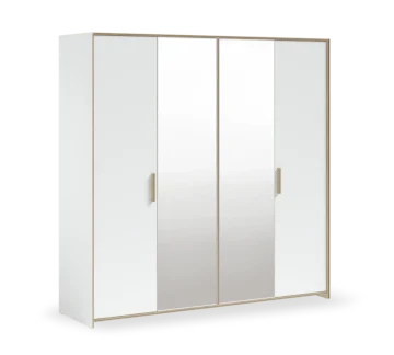 S sodobno zasnovo in razporeditvijo polic, ki dodaja dimenzijo upravljanju prostora, 4-vratna omara Modera ponuja rešitve, ki jih boste uživali ob uporabi štiridelne garderobne omare.