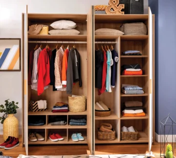 Sama razporeditev omare  poskrbi, da imate lahko vsa oblačila, ki si jih želite, na dosegu roke za vse štiri letne čase, ne da bi vam bilo treba razporejati oblačila po letnih časih.