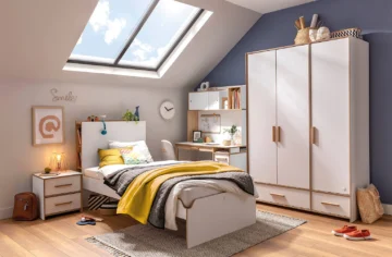 Dve ogledali po celotni dolžini v ohišju naravnega videza, široki obešalniki za oblačila in sistem za tiho zapiranje vrat poskrbijo za preprosto kompaktno pohištvo.