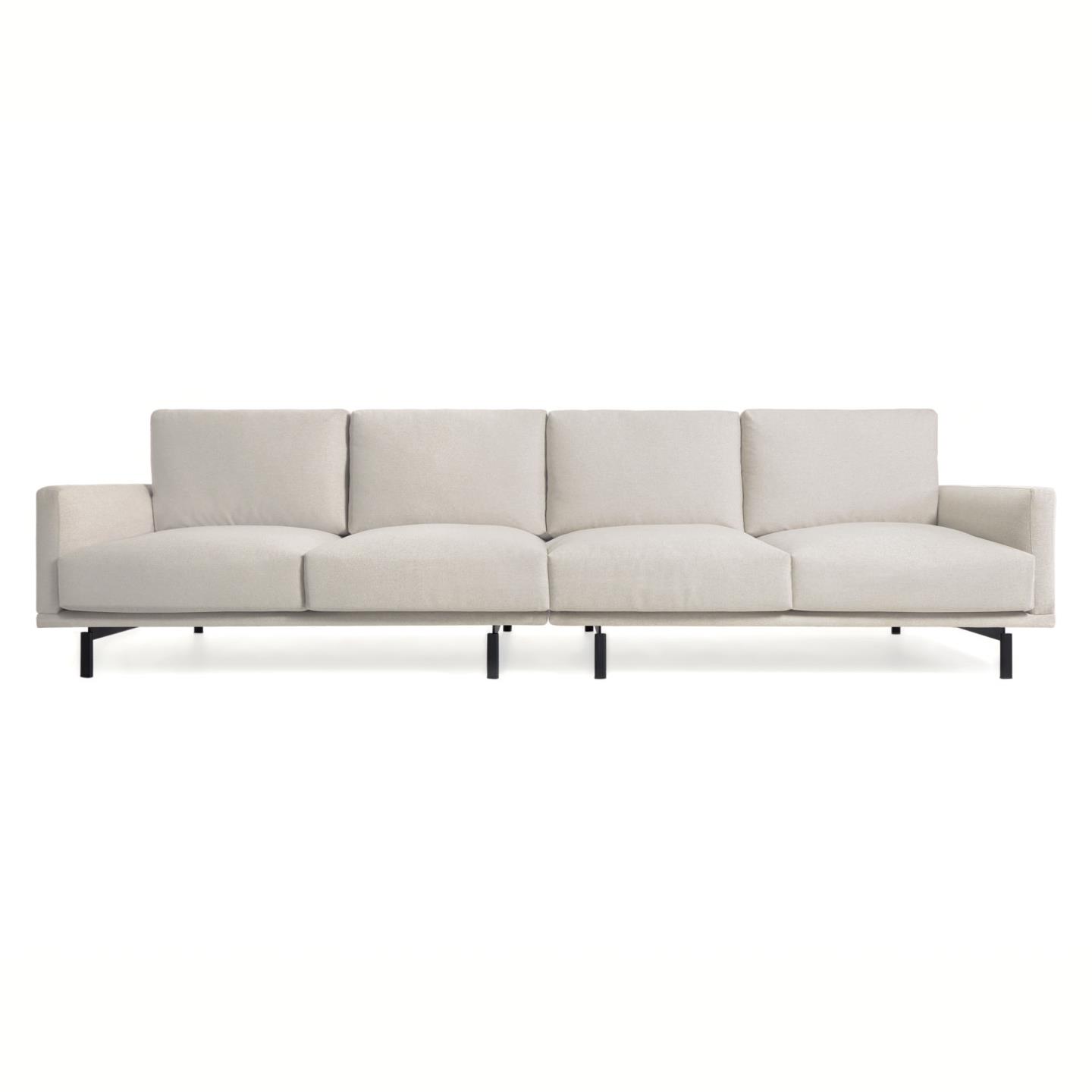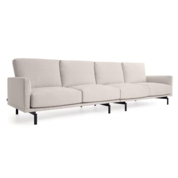 Sedežna garnitura Štirised Galene v bež barvi – 414 cm je dolga 414 cm, kar omogoča širok spekter uporabe, od družinskih srečanj do mirnih trenutkov ob knjigi. Narejena iz skrbno izbranih materialov, vključno z borovim lesom, MDF z nizkimi emisijami formaldehida in recikliranimi vlakni, ta ponudniška garnitura združuje trajnost in estetiko.