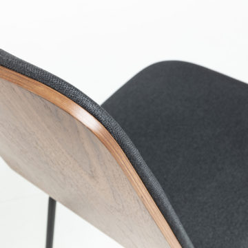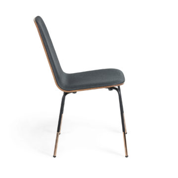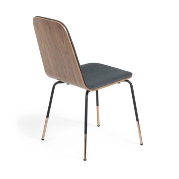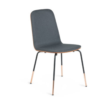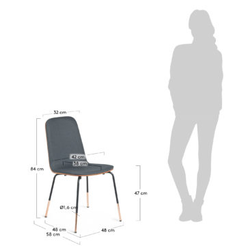 Chrystel je sodobno zasnovan jedilniški stol, dobavljiv v dveh različicah. Različici se med sabo razlikujeta po barvi sedišča in furnirju na hrbtni strani. Svetlejša različica ima svetlo sivo sedišče in ozadje oblečeno v furnir hrasta, temnejša pa temno sivo sedišče s hrbtno stranjo v furnirju lešnika in bakrom na konicah nogic. Dimenzija (globina x širina x višina): 58/48/84 cm Teža: 6,3 kg