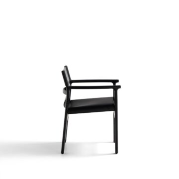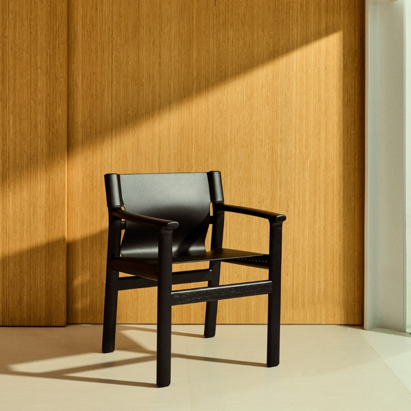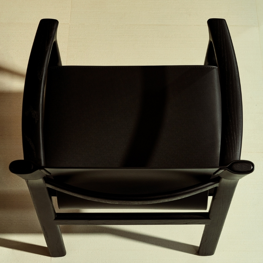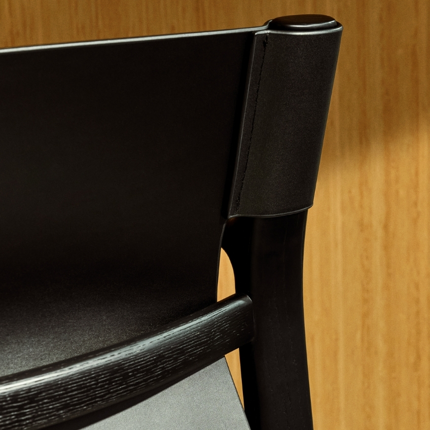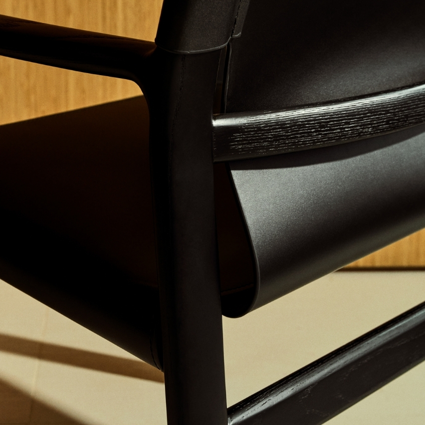 Jan vabi k vrnitvi k bistvu z mehko oblikovanimi linijami, ki povezujejo sodoben minimalizem in brezčasno eleganco. Masivna konstrukcija iz jesena ustvarja miren, topel vtis, medtem ko sedež iz recikliranega usnja nudi čvrst, objemajoč občutek in se prilagaja ergonomiji telesa. Diskretni detajli poudarjajo prefinjen značaj stola, certifikati FSC™, Global Recycled Standard in Leather Working Group Gold pa potrjujejo odgovorno izbiro materialov in trajnostno izdelavo. Za dodatno praktičnost so na nogah nameščeni zaščitni čepi, ki varujejo tla in ohranjajo brezhiben videz prostora.