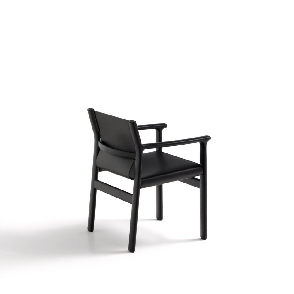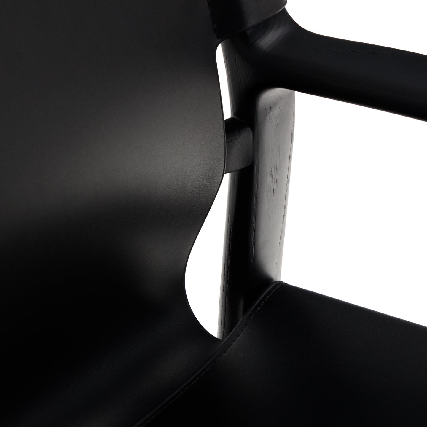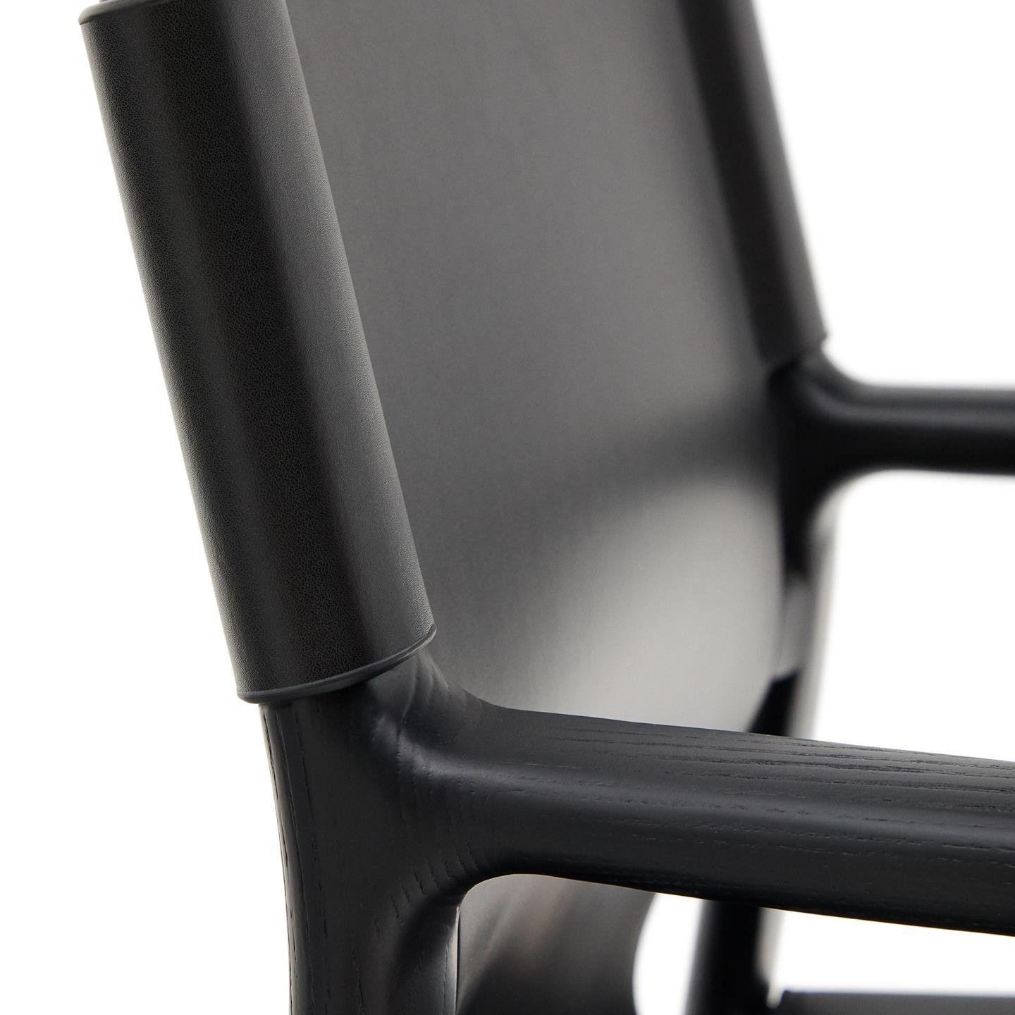 Jan vabi k vrnitvi k bistvu z mehko oblikovanimi linijami, ki povezujejo sodoben minimalizem in brezčasno eleganco. Masivna konstrukcija iz jesena ustvarja miren, topel vtis, medtem ko sedež iz recikliranega usnja nudi čvrst, objemajoč občutek in se prilagaja ergonomiji telesa. Diskretni detajli poudarjajo prefinjen značaj stola, certifikati FSC™, Global Recycled Standard in Leather Working Group Gold pa potrjujejo odgovorno izbiro materialov in trajnostno izdelavo. Za dodatno praktičnost so na nogah nameščeni zaščitni čepi, ki varujejo tla in ohranjajo brezhiben videz prostora.