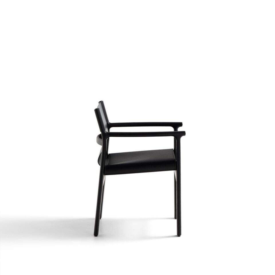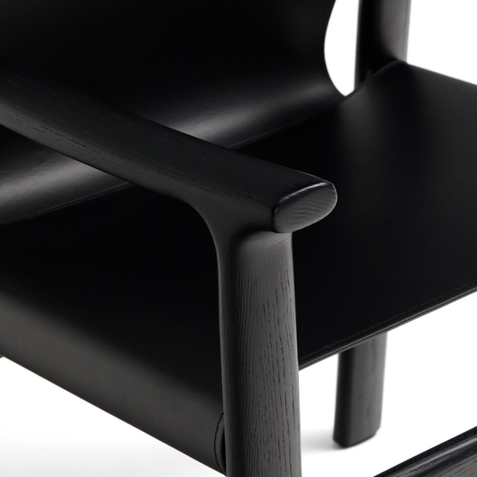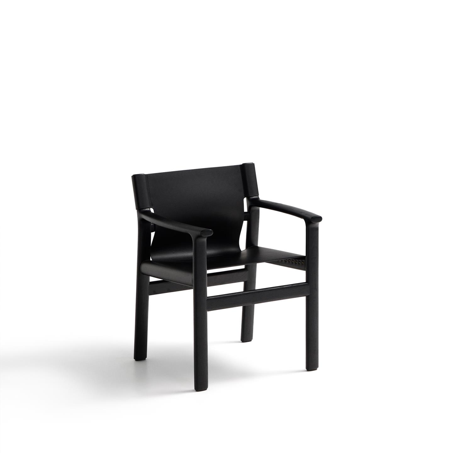 Glavni material jesen | Sestava 80 % jesen (Fraxinus Excelsior), 20 % reciklirano usnje | Okvir jesen | Obdelava vodni PU premaz | Sedež reciklirano usnje | Hrbtni naslon reciklirano usnje | Naslonjala za roke jesen | Noge jesen | Obdelava nog vodni PU | Zaščita nog plastični in filc podložki | Reciklirani materiali da (<25 %) | Naravni materiali da (>75 %)