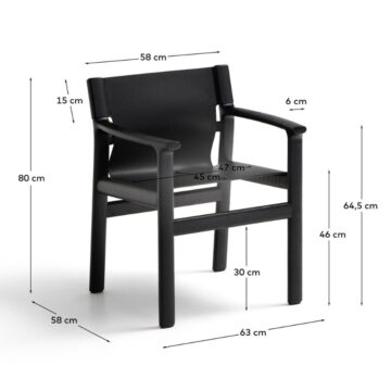 Višina 80 cm | Širina 63 cm | Globina 58 cm | Teža 8 kg | Višina nog 30 cm | Višina sedeža 46 cm | Širina sedeža 47 cm | Globina sedeža 45 cm | Višina naslonjal za roke 64,5 cm | Širina naslonjal za roke 6 cm | Višina hrbtnega naslona 15 cm | Širina hrbtnega naslona 58 cm | Toleranca mer ±2 cm