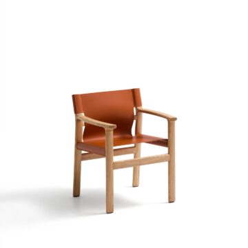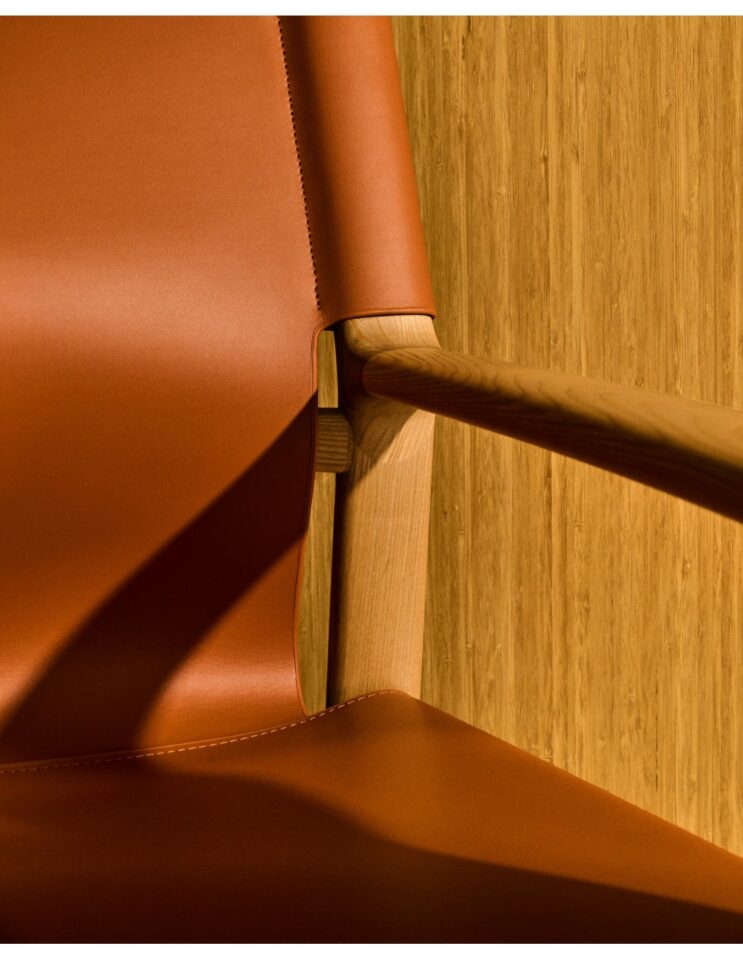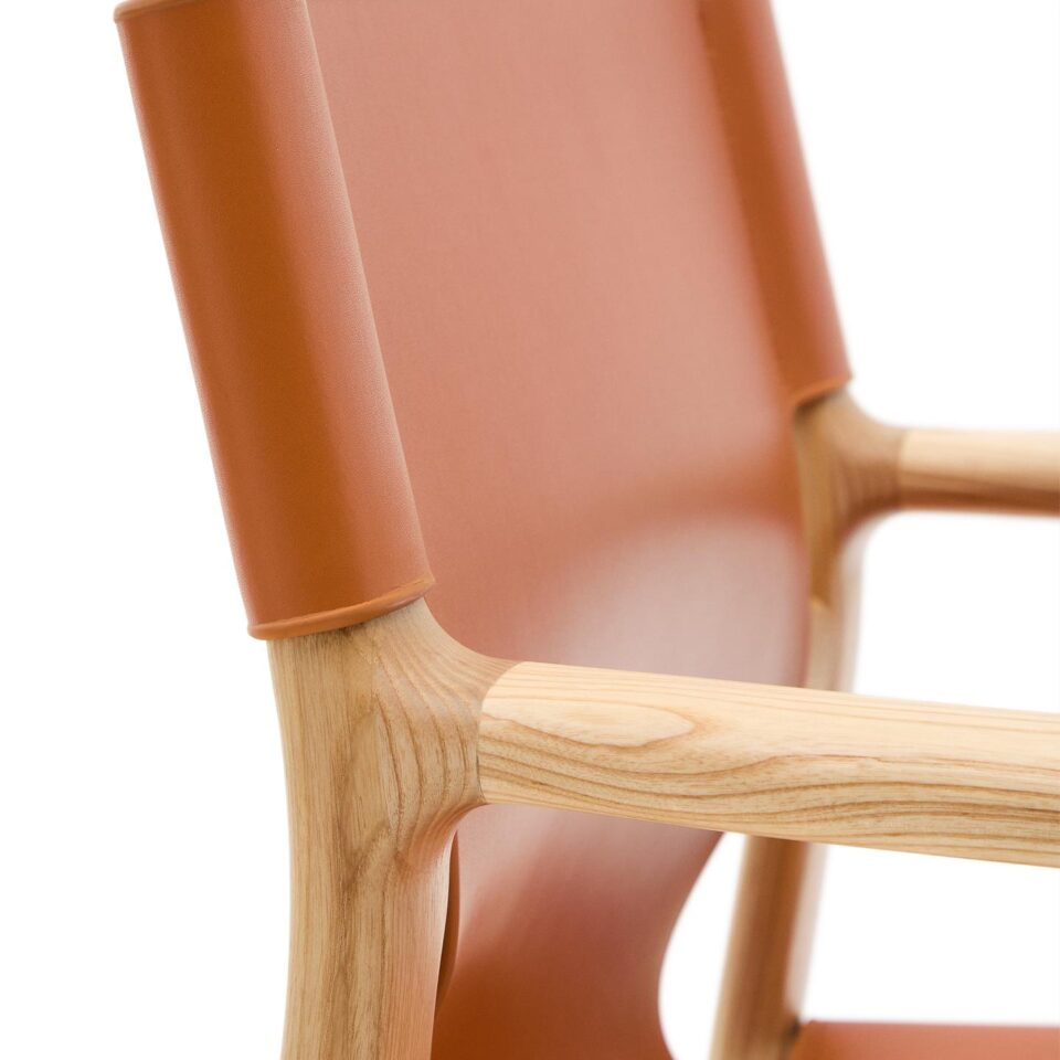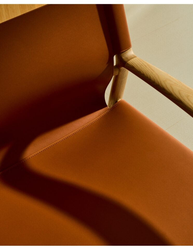 Jan vabi k vrnitvi k bistvu z mehko oblikovanimi linijami, ki povezujejo sodoben minimalizem in brezčasno eleganco. Masivna konstrukcija iz jesena ustvarja miren, topel vtis, medtem ko sedež iz recikliranega usnja nudi čvrst, objemajoč občutek in se prilagaja ergonomiji telesa. Diskretni detajli poudarjajo prefinjen značaj stola, certifikati FSC™, Global Recycled Standard in Leather Working Group Gold pa potrjujejo odgovorno izbiro materialov in trajnostno izdelavo. Za dodatno praktičnost so na nogah nameščeni zaščitni čepi, ki varujejo tla in ohranjajo brezhiben videz prostora.