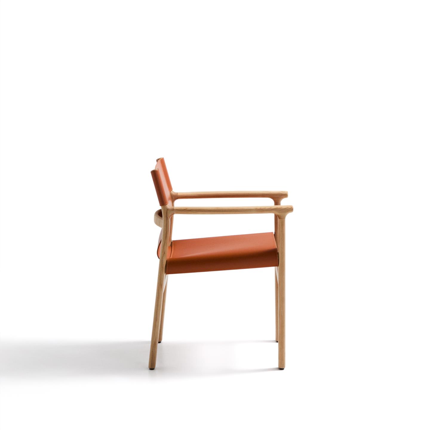 Glavni material jesen | Sestava 80 % jesen (Fraxinus Excelsior), 20 % reciklirano usnje | Okvir jesen | Obdelava vodni PU premaz | Sedež reciklirano usnje | Hrbtni naslon reciklirano usnje | Naslonjala za roke jesen | Noge jesen | Obdelava nog vodni PU | Zaščita nog plastični in filc podložki | Reciklirani materiali da (<25 %) | Naravni materiali da (>75 %)
