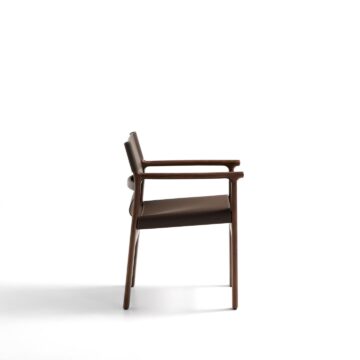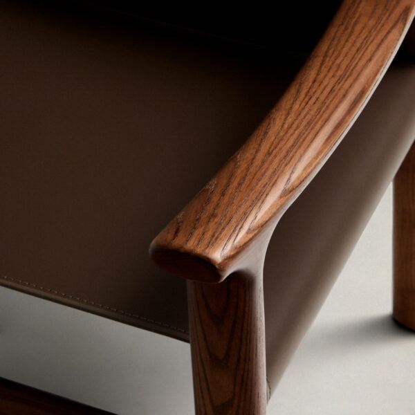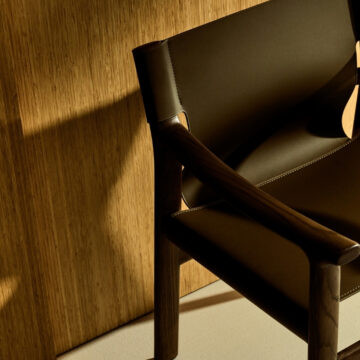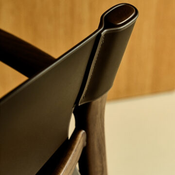 Jan vabi k vrnitvi k bistvu z mehko oblikovanimi linijami, ki povezujejo sodoben minimalizem in brezčasno eleganco. Masivna konstrukcija iz jesena ustvarja miren, topel vtis, medtem ko sedež iz recikliranega usnja nudi čvrst, objemajoč občutek in se prilagaja ergonomiji telesa. Diskretni detajli poudarjajo prefinjen značaj stola, certifikati FSC™, Global Recycled Standard in Leather Working Group Gold pa potrjujejo odgovorno izbiro materialov in trajnostno izdelavo. Za dodatno praktičnost so na nogah nameščeni zaščitni čepi, ki varujejo tla in ohranjajo brezhiben videz prostora.