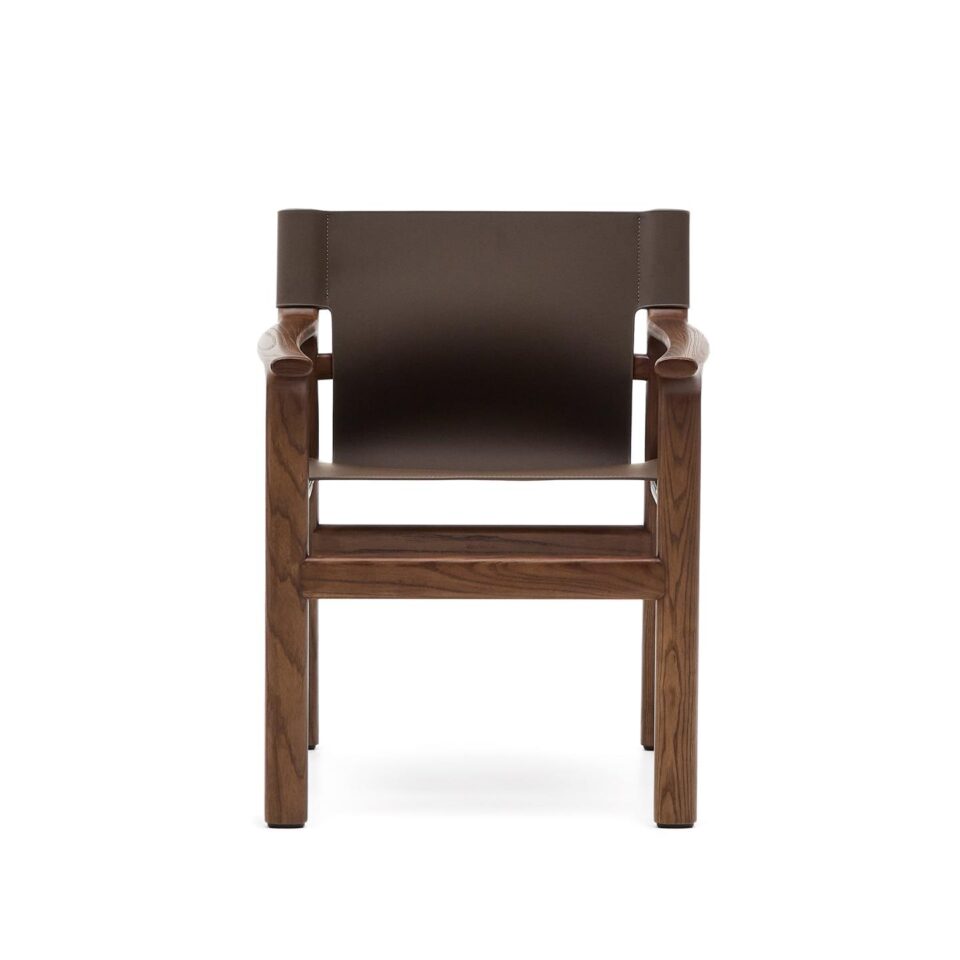 Glavni material jesen | Sestava 80 % jesen (Fraxinus Excelsior), 20 % reciklirano usnje | Okvir jesen | Obdelava vodni PU premaz | Sedež reciklirano usnje | Hrbtni naslon reciklirano usnje | Naslonjala za roke jesen | Noge jesen | Obdelava nog vodni PU | Zaščita nog plastični in filc podložki | Reciklirani materiali da (<25 %) | Naravni materiali da (>75 %)
