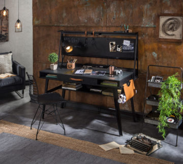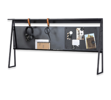 Študijska enota je večja v liniji pohištva Dark Metal. Odlično se poda, prav tako nad večjo, pisalno mizo iste linije. Ima magnetno tablo in polico – s tem nudi dovolj dodatnega prostora za hranjenje zvezkov, pisal in ostalih pripomočkov.Na voljo je v črni barvi z dodatki v svetlo rjavi barvi usnja. Zaščitena je z melaminom, odpornim proti praskam in prahu.