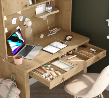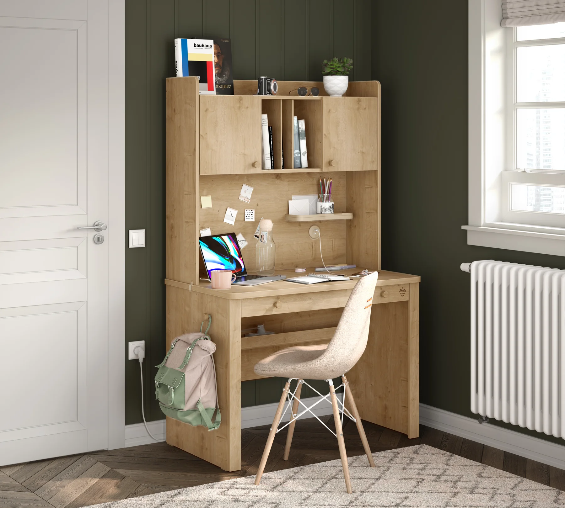 Študijska enota Mocha veliko manjših polic, ki so odlične za lažjo organizacijo. Ima tudi prostor za shranjevanje svinčnikov. Je delo proizvajalca Cilek. Ima veliko dodatnega prostora za shranjevaje stvari in se jo enostavno namesti nad pisalno mizo. Zaščitena je z melaminom, odpornim proti praskam in prahu.