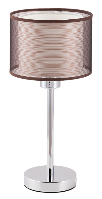 Tip svetila: notranja namizno svetilo 2631 Grlo: E27 Barva: krom/rjava Material: kovina/tkanina Maksimalna moč: 60 W Zaščita: IP20 Premer svetila: 18 cm Višina svetila: 39 cm Žarnica: možen dokup