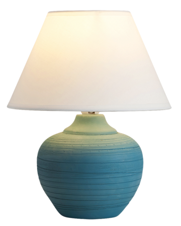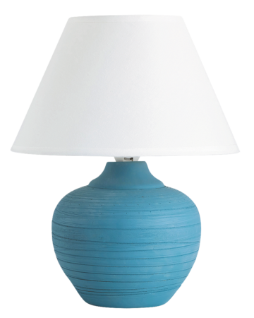 Tip svetila: notranje namizno svetilo 4392 Grlo: E-14 Barva: modra, bela Material: keramika, tekstil Maksimalna moč: 40 W Zaščita: IP20 Premer: 20 cm Višina: 25 cm Žarnica: ni vključena v ceno, možen dokup