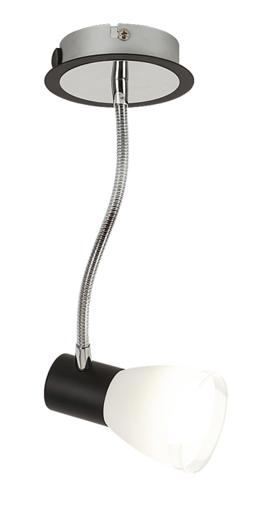 Tip svetila: notranje reflektorsko stropno svetilo 5975 Grlo: E-14 Barva: črna, krom Material: kovina, steklo Maksimalna moč: 15 W Zaščita: IP20 Širina: 16,5 cm Žarnica: ni vključena v ceno