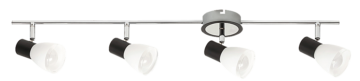 Tip svetila: notranje reflektorsko stropno svetilo 5979 Grlo: E-14 Barva: črna, krom Material: kovina, steklo Maksimalna moč: 4 x 40 W Zaščita: IP20 Širina: 79 cm Žarnica: ni vključena v ceno