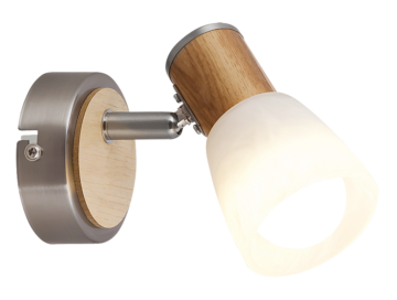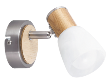 Tip svetila: notranje stensko reflektorsko svetilo 6486 Grlo: E-14 (1X MAX 40 W) Barva: krom/ bukev Material: kovina, steklo, les Maksimalna moč: 40 W Zaščita: IP20 Višina: 14 cm Širina: 8 cm Oddaljenost od stene: 16,5 cm Žarnica: ni vključena v ceno