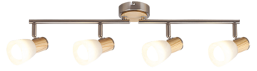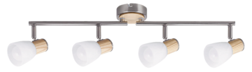 Tip svetila: notranje stropno reflektorsko svetilo 6489 Grlo: E-14 (4X MAX 40 W) Barva: krom satinato/ bukev Material: kovina, steklo, les Maksimalna moč: 40 W Zaščita: IP20 Višina: 17,5 cm Širina: 59 cm Žarnica: ni vključena v ceno