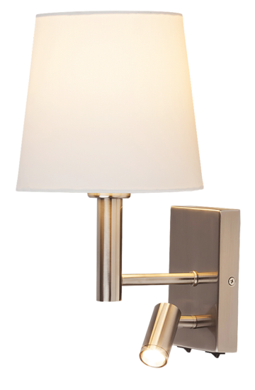 Svetilo 6529. V svetilo ustrezajo žarnice E-14 z močjo 1x40W- žarnica ni vključena v ceno. Svetilo ima tudi bralno led lučko z močjo 3W.