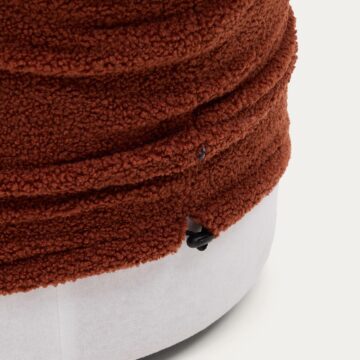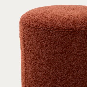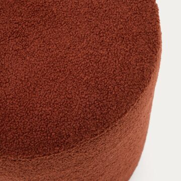 Tabure Kaeli v rjavi barvi – premera 43 cm je izdelan iz kakovostnih materialov, vključno s prevleko iz recikliranega poliestrskega bukleja, trdim lesom in poliuretansko peno, kar zagotavlja dolgotrajno uporabo in prijetno udobnost.