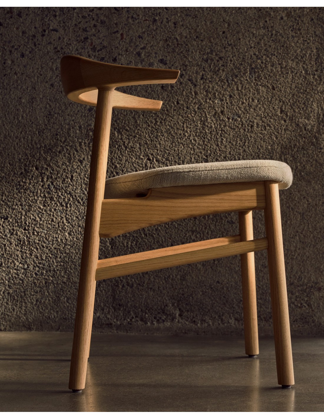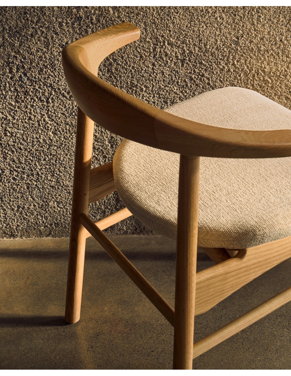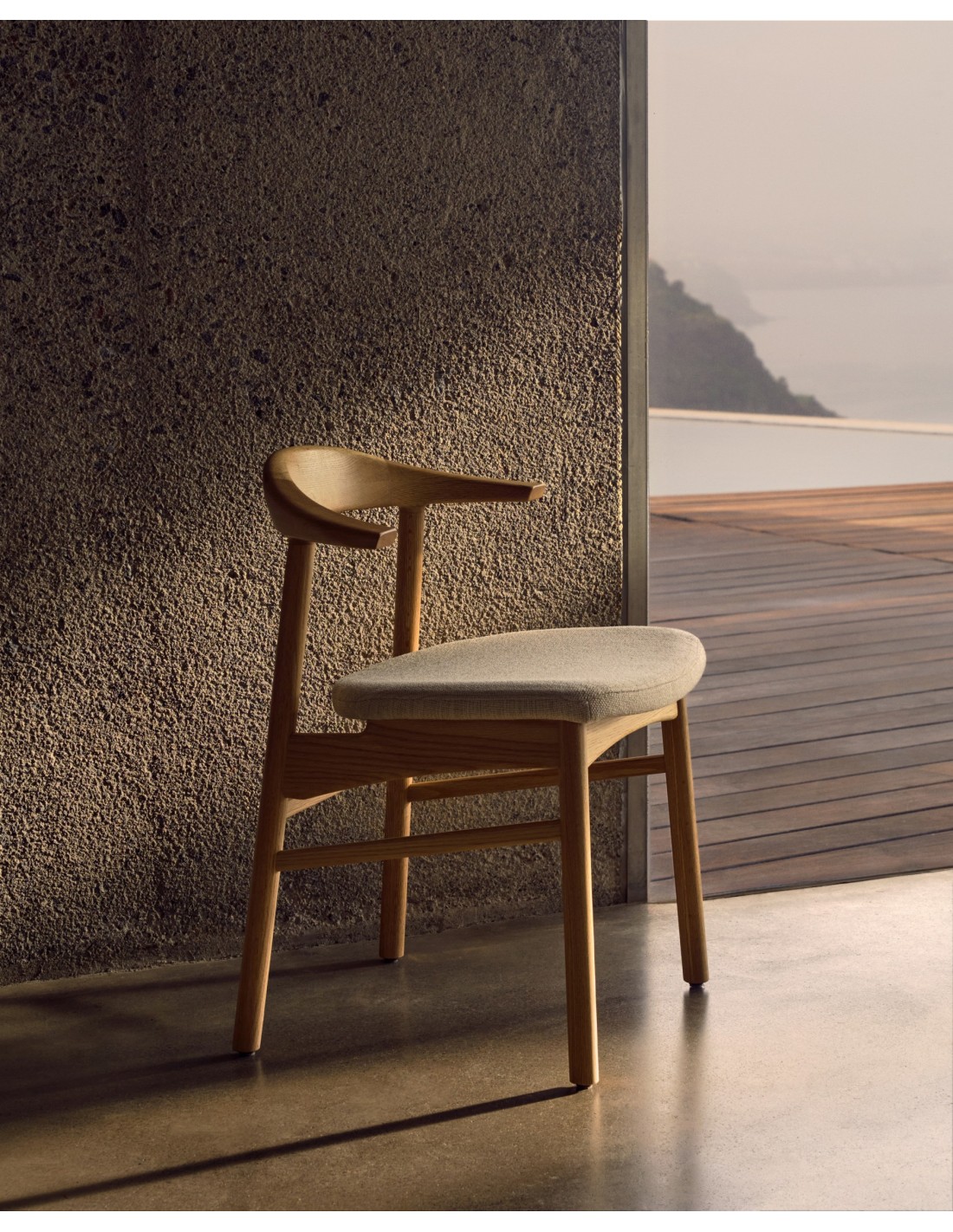 Kolekcija Timons združuje tradicionalne in sodobne vplive ter ustvarja stol, ki deluje brezčasno in prilagodljivo različnim interierjem. Njegove čiste geometrijske linije poudarjajo sodoben značaj, medtem ko masiven hrast z oljnim zaključkom prinaša toplino, naravno eleganco in dolgotrajno vzdržljivost. Les iz certificiranih FSC Mix Credit virov zagotavlja odgovorno poreklo, tekstil iz chenilla pa doda mehkobo, toplino in moderen videz.
