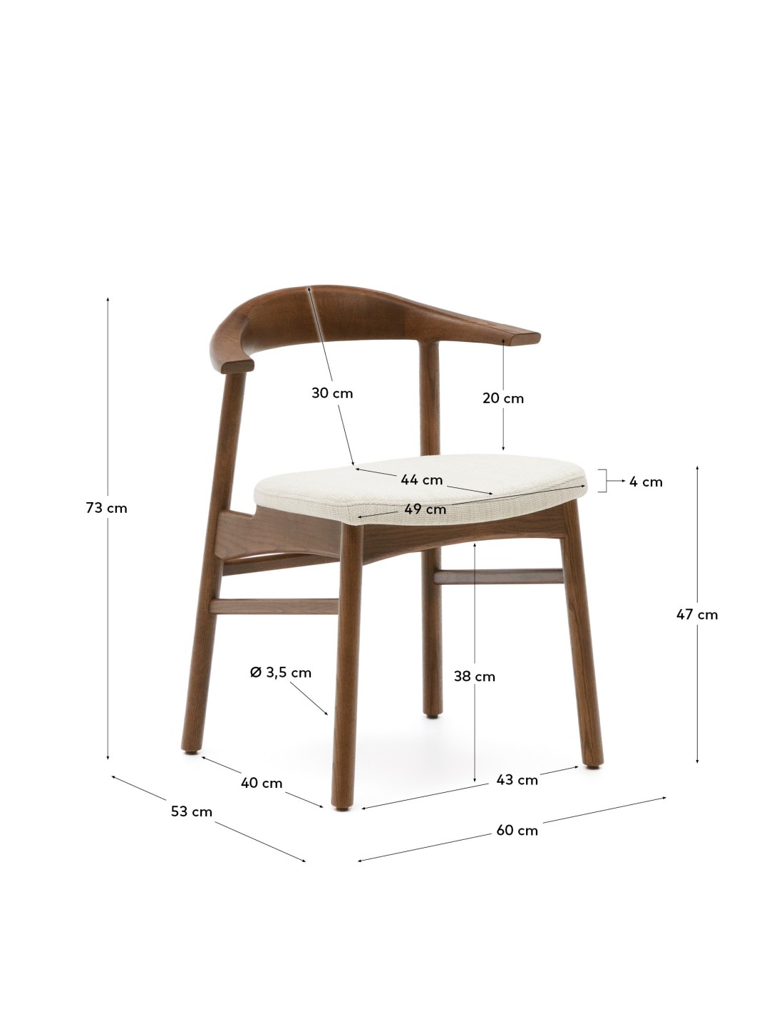 Dimenzije: višina 73 cm | širina 60 cm | globina 52,5 cm | višina sedišča 47 cm | širina sedišča 49 cm | globina sedišča 44 cm | višina naslonjala 30 cm | širina naslonjala 49 cm | višina nog 38 cm | teža 5 kg | nosilnost 130 kg | toleranca mer ±2 cm