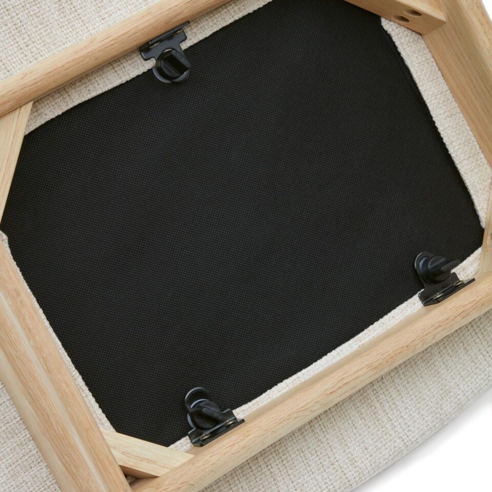 Materiali: masiven hrast | pena PU | tkanina | vezana plošča E0 | kavčukovec | sintetična vlakna | sestava 70% hrast (Quercus Petraea) | 10% pena PU | 5% tkanina | 5% vezana plošča E0 | 5% kavčukovec | 5% sintetična vlakna | zaključek lesa oljni PU | noge hrast z oljnim zaključkom | tkanina chenille 100% poliester | polnilo pena + akrilna vlakna | gostota pene 30 kg/m³ | odpornost proti muckanju 5 odlična | obstojnost barve na svetlobi 5 zelo dobra | podložke nog filc