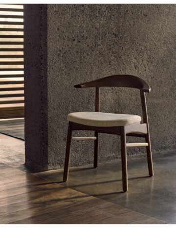 Kolekcija Timons združuje tradicionalne in sodobne vplive ter ustvarja stol, ki deluje brezčasno in prilagodljivo različnim interierjem. Njegove čiste geometrijske linije poudarjajo sodoben značaj, medtem ko masiven hrast s temnim oljnim zaključkom prinaša toplino, naravno eleganco in dolgotrajno vzdržljivost. Les iz certificiranih FSC Mix Credit virov zagotavlja odgovorno poreklo, tekstil iz chenilla pa doda mehkobo, toplino in moderen videz.