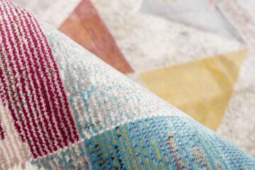 Tkana preproga Picasso PIC 620 v večbarvni kombinaciji prinaša svež in sodoben dizajn z geometrijskim vzorcem, ki prostoru doda živahnost in unikatnost. Kombinacija 16 barv in trikotnih vzorcev ustvarja igrivo, a uravnoteženo estetiko, ki se bo podala tako v sodobna kot klasična stanovanja. Raznolikost barvnih odtenkov poskrbi, da se preproga enostavno vklopi v različne barvne sheme, hkrati pa postane osrednji dekorativni element prostora. Izdelana iz 100 % PP Heatset materiala, preproga zagotavlja visoko trpežnost in odpornost na obrabo. Tkanje s tehniko Power Loomed in Cross-woven zagotavlja gostoto vlaken, kar preprogi daje dolgotrajno kakovost in prijeten mehak občutek pod nogami. Bombažna osnovna nit (weft) še dodatno izboljšuje strukturo preproge in zagotavlja udobje. Z višino kupa ± 10 mm in težo ± 2.000 g/m² je preproga Picasso PIC 620 primerna za uporabo v različnih prostorih, od dnevne sobe do spalnice, kjer bo dodala toplino in mehkobo. Preproga je tudi enostavna za vzdrževanje, saj sintetična vlakna omogočajo enostavno čiščenje in so odporna na madeže. Geometrijski vzorec in raznolikost barv preprogi dajeta moderen videz, ki je idealen za tiste, ki želijo popestriti svoj dom z nekaj igrivosti in barv. S svojimi odličnimi izolativnimi lastnostmi in zmožnostjo blaženja hrupa bo preproga ustvarila prijeten ambient, ne glede na stil vašega doma.