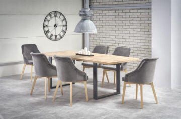 Toledo 2 je moderni stol iz blaga z nogami iz masivnega bukovega lesa, zople barve hrasta. Odlikuje ga eleganten dizajn s sodobnim videzom. Zaradi ergonomično oblazinjenim sedežem, naslonjalom in nasloni za roke, je stol zelo udoben za sedenje.