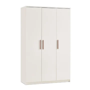 Tridelna garderobna omara Happy združuje eleganco in funkcionalnost, kar jo naredi idealno izbiro za vsako moderno spalnico ali otroško sobo. Izjemno vzdržljiv aluminijast obešalnik zagotavlja dovolj prostora za obešanje oblačil, medtem ko vrata omare omogočajo tiho in varno odpiranje zahvaljujoč zavorni funkciji tečajev.