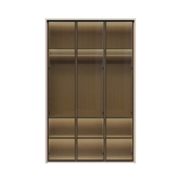 Trodelna garderobna omara Kalla Opera P3-3AL iz kolekcije Opera združuje moderno zasnovo z vrhunsko funkcionalnostjo. Z dimenzijami 137 cm širine, 224 cm višine in 56 cm globine ponuja prostor za shranjevanje z dvema garderobnima palicama in šestimi policami. Steklene fronte s parsol steklom in aluminijskim okvirjem ter notranjost v tekstilnem dekorju prinašajo eleganco in prefinjenost v vsak prostor. Integrirana razsvetljava in soft-close mehanizmi pa poskrbijo za udobje in enostavno uporabo.