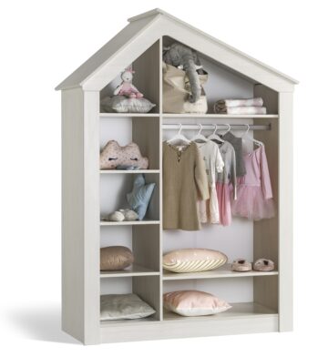 Tridelna omara Roza hiška vas bo navdušila z unikatnim izgledom v obliki hiške in nežno roza barvo. V notranjosti omare vas bo navdušila LED lučka s senzorjem pritrjena na obešalno palico znotraj omare. Ogrodje garderobne omare je izdelano iz oplemenitene iverne plošče E1 kakovosti, debeline 18mm. Vsi robovi so ABS zaobljeni. Vrata se mehko zapirajo.