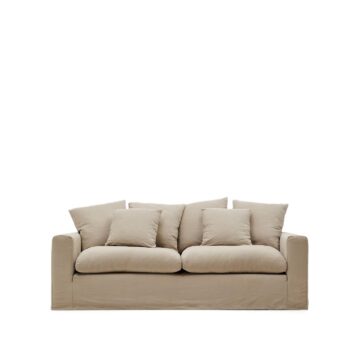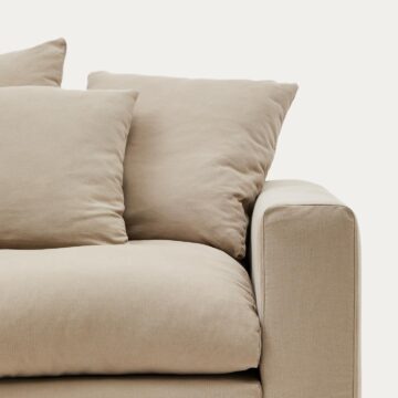Trosed Nora v taupe barvi z blazinami – 240 cm se ponaša z minimalističnimi ravnimi linijami in estetsko privlačnim videzom, ki se odlično prilega različnim bivalnim prostorom. Prevleka je izdelana iz kakovostnih lanu in bombaža, kar daje trosedu ne le eleganten videz, ampak tudi mehkobo in prijetnost na dotik.