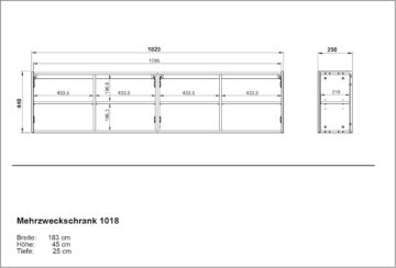 TV komoda Piana s štirimi vrati in elegantno ozko globino je odlična rešitev za manjše dnevne sobe ali hodnike, kjer je prostor omejen. Kljub kompaktnim meram ponuja veliko prostora za shranjevanje in poskrbi za urejen videz prostora.