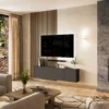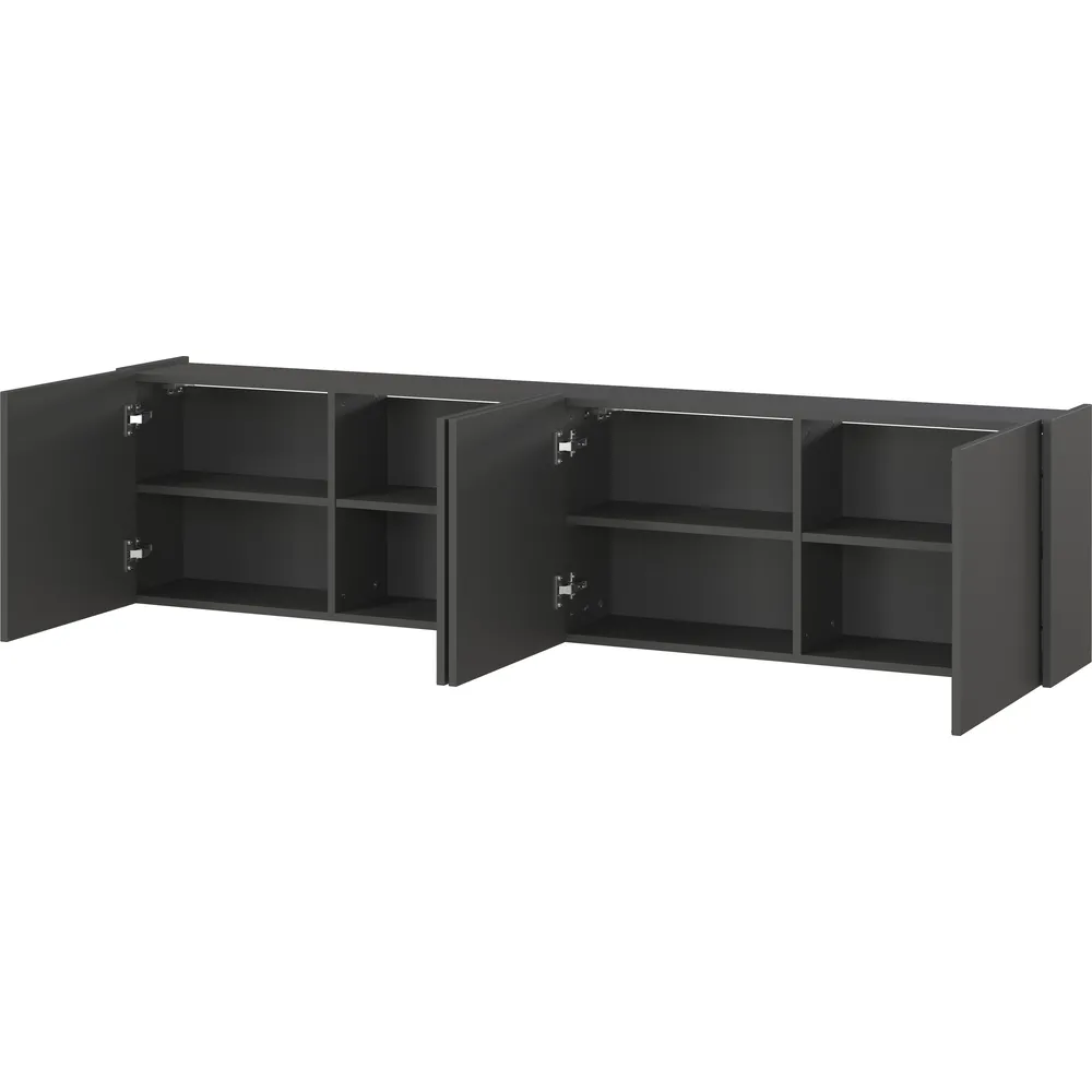 TV komoda Piana s štirimi vrati in elegantno ozko globino je odlična rešitev za manjše dnevne sobe ali hodnike, kjer je prostor omejen. Kljub kompaktnim meram ponuja veliko prostora za shranjevanje in poskrbi za urejen videz prostora.