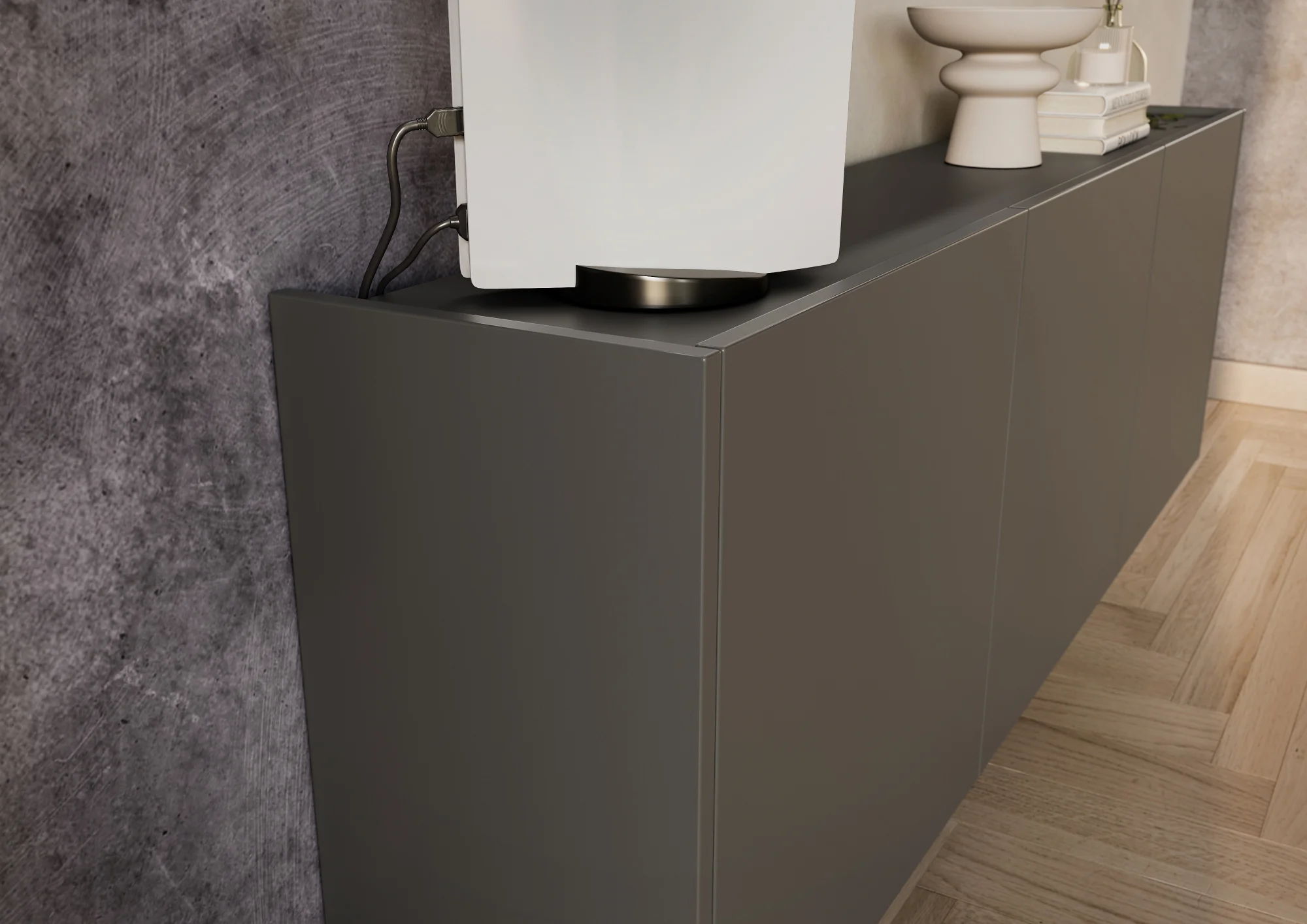 - Funkcionalnost: Mehko zapiranje vrat z integriranimi blažilci, možnost stenske pritrditve