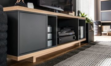 Nekonvencionalna in sodobna TV omarica je izjemno fleksibilna, saj jo lahko poljubno spremenite z dodajanjem kompatibilnih kosov pohištva iz inovativnega pohištvenega sestava Balance. Slednji uporabniku ponuja svobodo pri sestavljanju in izbiri. Njegova posebnost se kaže v prostem pozicioniranju brez uporabe žebljev*. Kot substitut za žeblje uporablja protidrsne nalepke, ki preprečijo morebitne nevarnosti. Poljubne postavitve se lahko dopolnijo s kompatibilnimi pripomočki za organiziranje in razvrščanje predmetov, ki barvno in oblikovno dopolnjujejo elegantne sestave.
