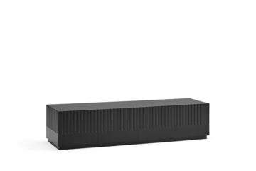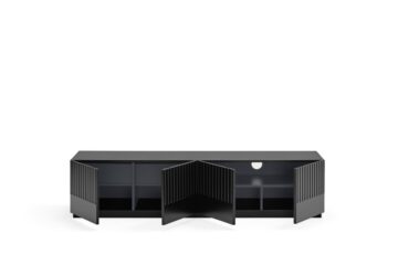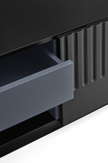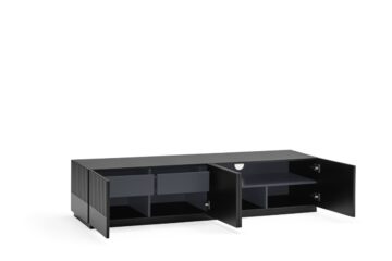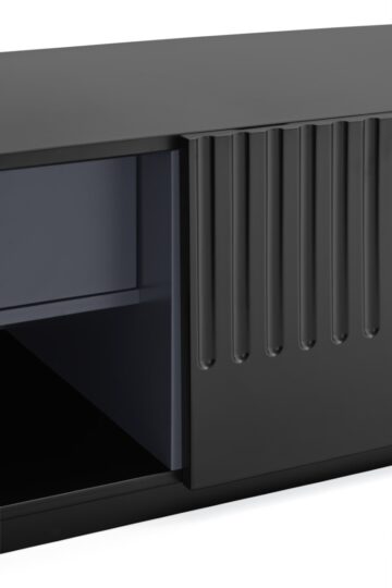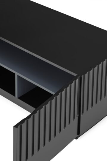 TV omarica Doric združuje minimalističen dizajn in praktično funkcionalnost, kar jo naredi popolno za sodobne dnevne sobe. Z elegantno črno lakirano zunanjostjo, sivo notranjostjo ter prostorno notranjostjo ponuja dovolj prostora za shranjevanje in urejeno upravljanje kablov.
