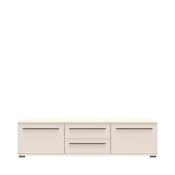 TV omarica Radda Piano TV180-2K2F je moderna, elegantna in funkcionalna rešitev za dnevno sobo. S svojo širino 180 cm ponuja dovolj prostora za medijske naprave in dodatke. Lakirana z nežnim mat UV lakom v barvi Kašmir, v kombinaciji z okrasnim profiliranim MDF okvirjem, omarica združuje estetski videz in praktičnost. Z dvema kriloma in dvema predaloma, opremljenimi z mehkim zapiranjem in skritimi drsniki, omogoča nemoteno in tiho delovanje. Nastavljive noge in trdna konstrukcija s tlemi in stropom debeline 25 mm zagotavljajo stabilnost in trajnost.