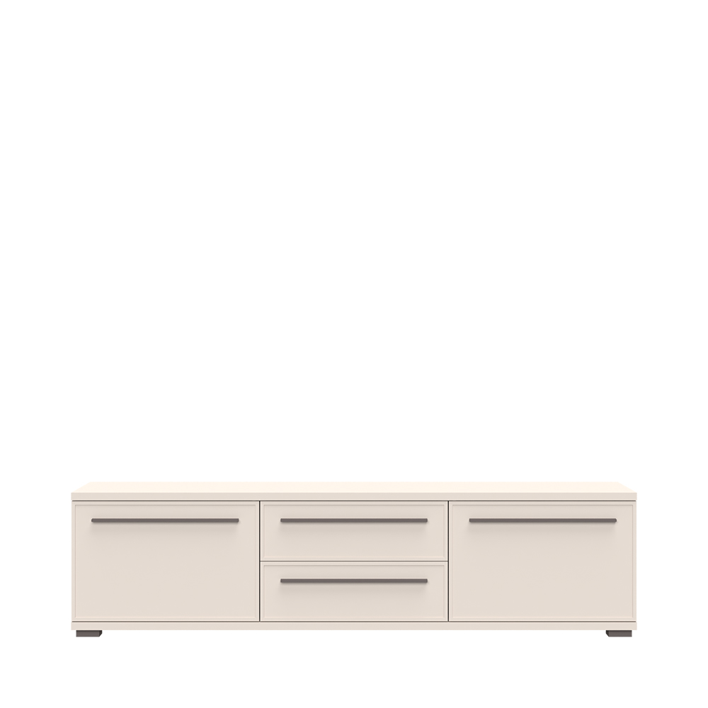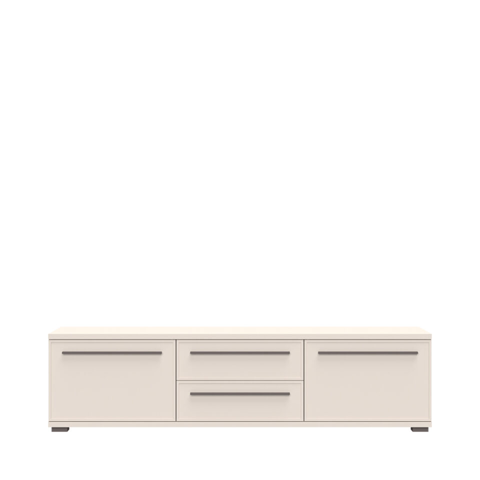 TV omarica Radda Piano TV180-2K2F je moderna, elegantna in funkcionalna rešitev za dnevno sobo. S svojo širino 180 cm ponuja dovolj prostora za medijske naprave in dodatke. Lakirana z nežnim mat UV lakom v barvi Kašmir, v kombinaciji z okrasnim profiliranim MDF okvirjem, omarica združuje estetski videz in praktičnost. Z dvema kriloma in dvema predaloma, opremljenimi z mehkim zapiranjem in skritimi drsniki, omogoča nemoteno in tiho delovanje. Nastavljive noge in trdna konstrukcija s tlemi in stropom debeline 25 mm zagotavljajo stabilnost in trajnost.