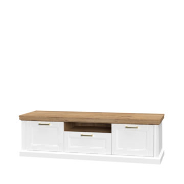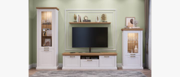 Tv omarica Tara iz kolekcije dnevnih sob Tara je mešanica rustikalnega in sodobnega videza hkrati pa prostoru pridaja pridih luksuza. Tv omarica je lakirana z UV mat lakom na vodni bazi in je v grafit sivi ali beli barvi z dodatkom barve pacifik oreha. Strop, dno in fronte so iz mediapana. Omarica ima en predal in dvoja vrata ter odlagalno polico. Dimenzija: Š 177 X V 52 X G 54 cm.