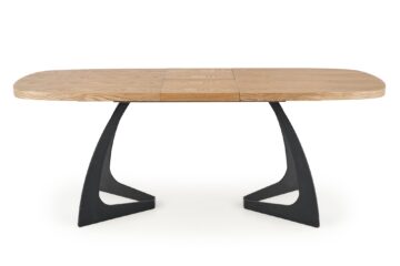 Raztegljiva jedilna miza Veldon združuje toplino naravnega hrasta in moderno črnino jeklenih nog. Zaradi raztegljive funkcije od 160 do 200 cm je idealna za vsakodnevne obroke in posebne priložnosti.
