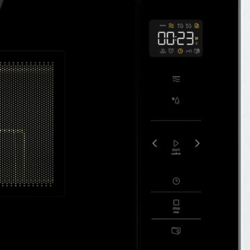 Načini ogrevanja vključujejo mikrovalove in žar, z 2 kombinacijami mikrovalov + žar in 1 žar programom. Pečica omogoča hitro in avtomatsko odtaljevanje na čas in težo, AquaClean funkcijo, AUTO menu in otroško zaščito.