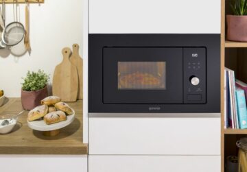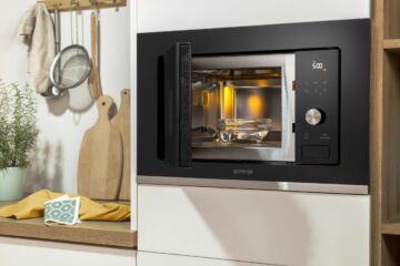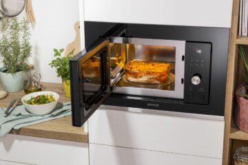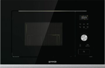 Izdelana je v črni barvi, material notranjosti vrat je nerjavno jeklo, vrata so iz stekla, prav tako fronta. Odpiranje vrat poteka z gumbom in ima levo odpiranje vrat. Pečica ima 5 stopenj moči mikrovalov, 800 W mikrovalovno moč in 1.000 W moč žara.