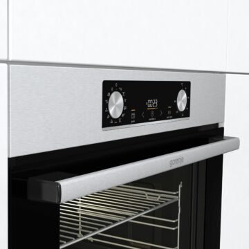 Upravljanje temperature je mehansko, oblika gumbov pa je pogrezljiva. Dodatne funkcije vključujejo AirFry, peko zamrznjenih živil in GentleBake. Mere pečice so 59,5 × 59,5 × 56,4 cm, vrsta izdelka pa je vgradna pečica.