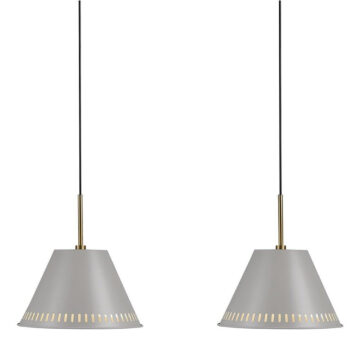 Viseča svetilka Pine z dvema lučema v mat sivi kovini je odlična osvetlitev nad jedilno mizo ali kuhinjskim otokom, saj je dekorativna in oddaja dobro praktično svetlobo.