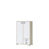 Visoka komoda Kiki K22 je vsestranska in uporabna za otroške in mladinske sobe. Visoko komodo lahko kombinirate z ostalimi elementi iz programa Kiki in tako dosežete večjo prilagodljivost in boljšo izkoriščenost prostora. Vsebuje dva predala in dvojna vrata, ki se tiho zapirajo (Soft-Close). Vsi robovi so zaščiteni z ABS trakom. Narejena iz kvalitetne oplemenitene plošče priznanega proizvajalca, ki skrbi, da so materiali preverjene kakovosti in neškodljivi, ter zato primerni za uporabo v otroških sobah.
